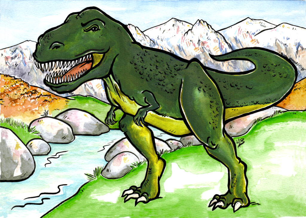 Un ampelosaure qui mange du raisin dans les vignes sous le Mont Gozzi ? Un spinosaure qui pêche dans les Pozzi ? Et même un T.Rex qui lézarde au bord de la Gravona ! Les archéologues sont chamboulés par la nouvelle, on a croisé des dinosaures dans nos montagnes !